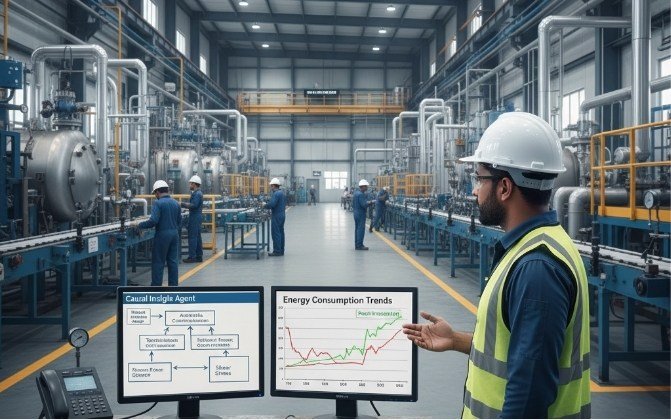 At the asset level, the Causal Insight Agent modeled causal relationships using graphs on time-series data. It identified links like mashing temperature influencing wort gravity, which causally affected fermentation speed and spirit quality. This uncovered root drivers, such as how a 2°C increase in mashing could boost sugars but risk enzyme denaturation, providing “why” insights for initial change assessments.